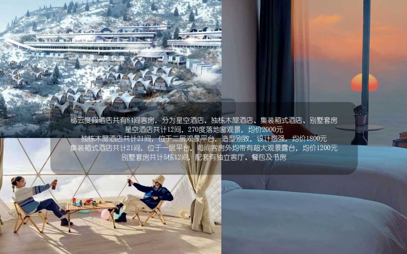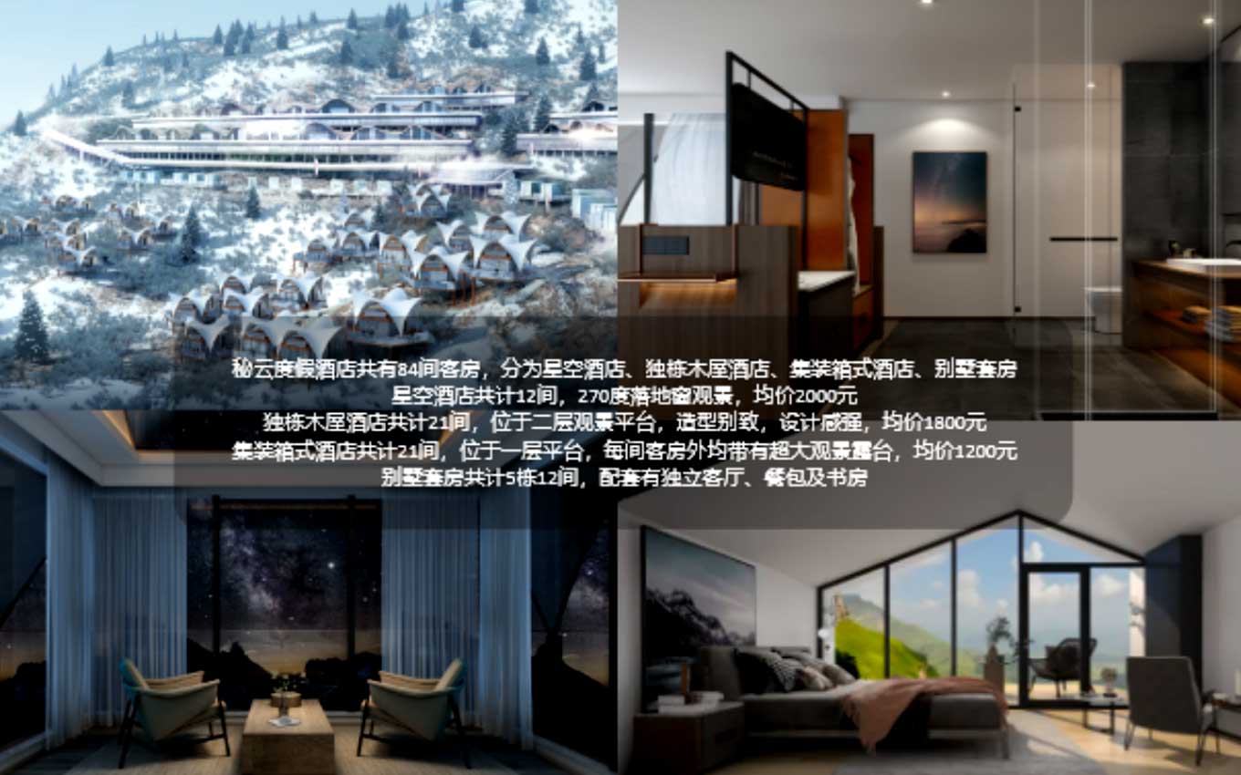 亞洲最美360°觀景平臺——牛背山,秘云星空度假村駕露宿占地面積40畝,有著大型的地下停車場,酒店住宿,餐館,度假旅游招待核心等服務項目服務設施,集裝箱房屋17家,星空帳篷酒店13家,固定不動醫(yī)院病床50張,標間20間,大被單間10間,露營帳篷50間;可與此同時招待150人。