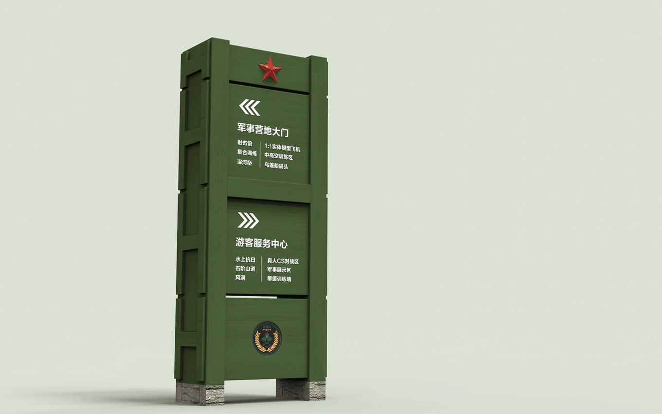 大王莊軍事訓練營景區(qū)項目位于泗洪縣半城鎮(zhèn)大王莊,工程占地面積約為105畝,主要建設內容包括:景觀綠化、水系、鋪裝路面、景觀小品、房屋建筑、園林配套設施、拓展訓練設施等,工程計劃總投資約6300萬元訓練營品牌設計及導視系統(tǒng)設計由人和時代CRT設計集團完成,整體以軍事元素為設計基礎,結合現(xiàn)代化的設計感觀,讓設計年輕化,體現(xiàn)軍事的特點。