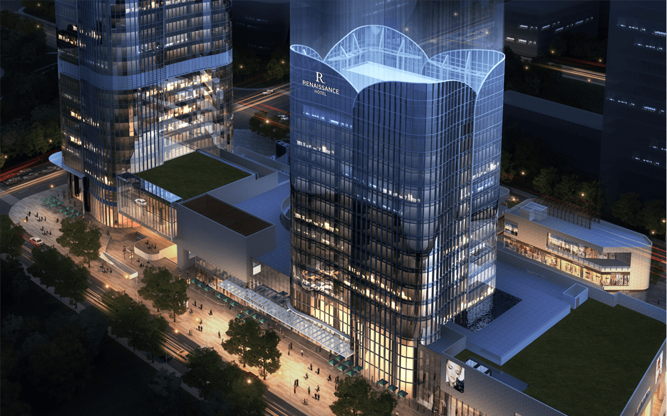 萬麗酒店總建筑面積:200653.85㎡,其中地上建筑面積122504.63㎡,包括1棟43層(79619.86㎡)的超高層國際5A甲級(jí)寫字樓(T1塔樓);1棟18層(33500㎡)的國際知名品牌酒店(T2塔樓);1棟獨(dú)棟及商業(yè)裙樓(7120.98㎡);五層地下室總建筑面積78149.22㎡,包含5000㎡的商業(yè)地下室,1216個(gè)機(jī)動(dòng)停車位及設(shè)備用房。